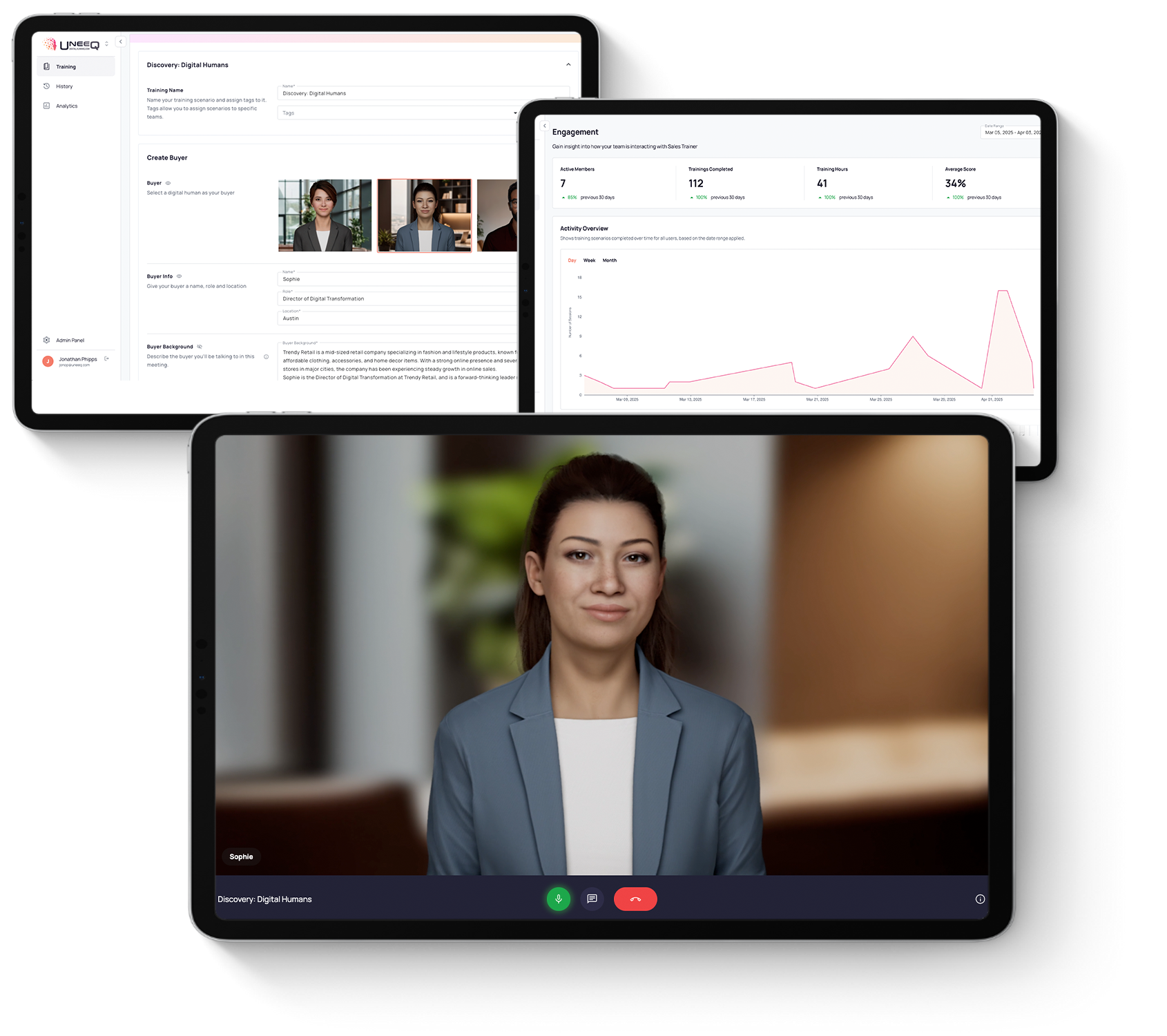 As an example, UneeQ Sales Trainer is an immersive AI roleplay solution specifically for sales teams. Check out how it works in the video below:
