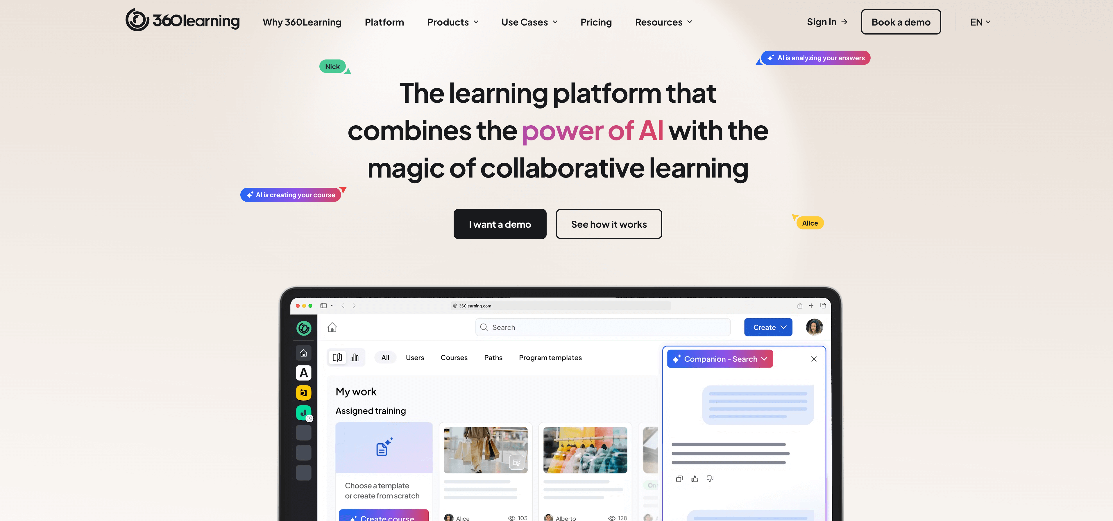 360Learning flips the traditional L&D model on its head. Instead of a small team of instructional designers creating all content (slowly), 360Learning lets subject matter experts across your organization build and share courses. It's collaborative learning that actually scales.