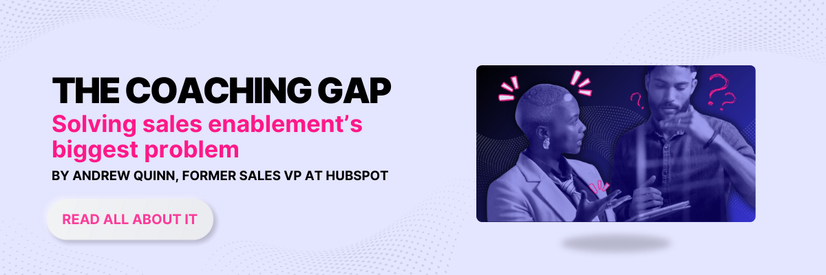 Andrew Quinn, former VP of Sales Enablement at Hubspot, agrees. He told us: “In sales, practice equals roleplay. And let’s get real here, most sales managers suck at roleplay.“