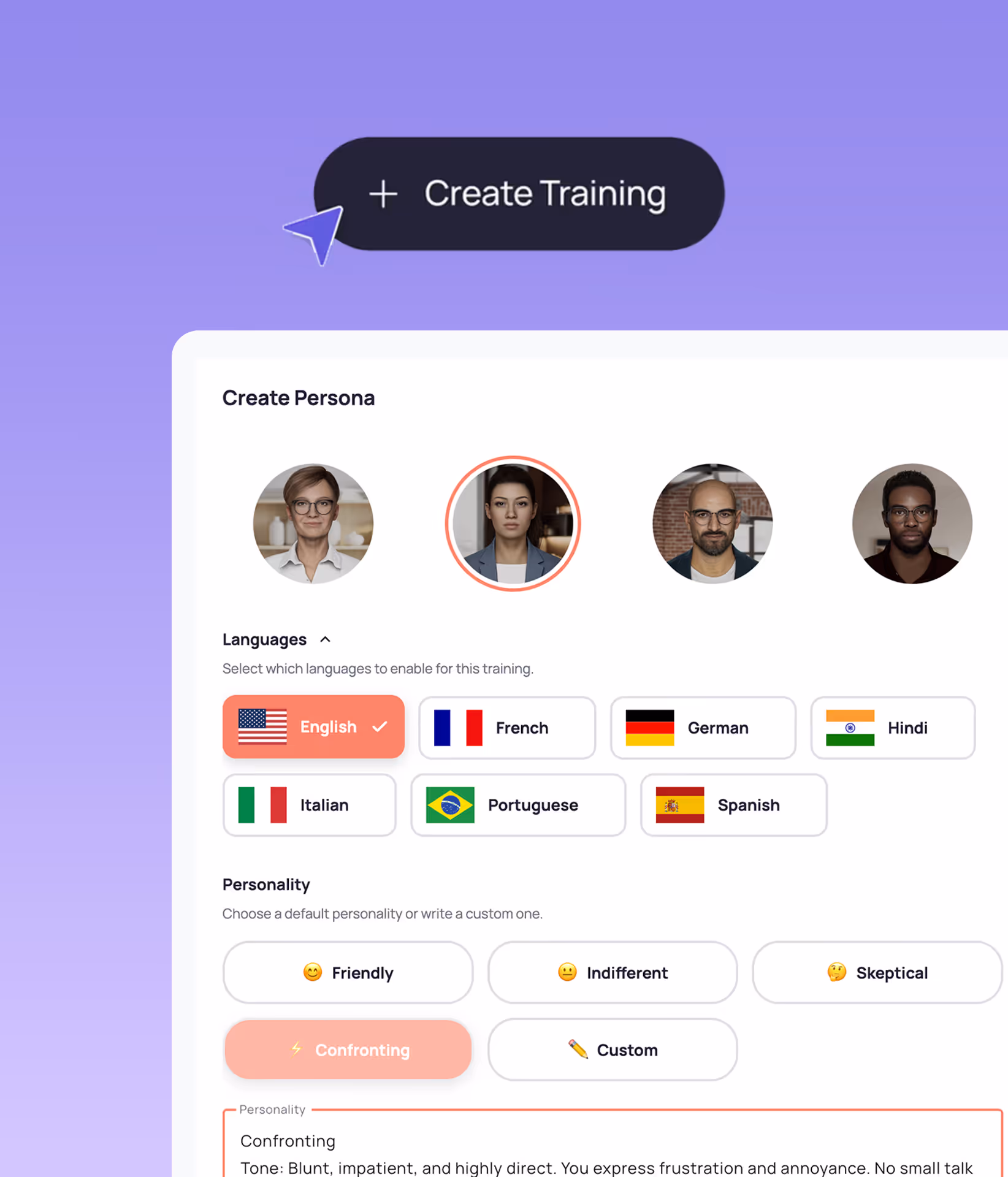 Absolutely. We tailor AI personas, customer scenarios, policies, compliance requirements, and product details to match your industry, brand voice, and specific service challenges. Your team practices situations they'll actually face.